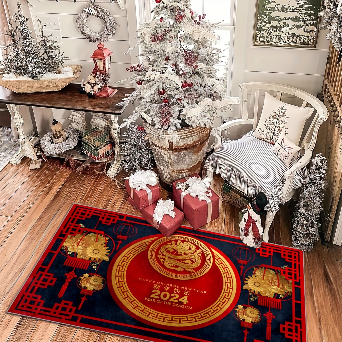 1pc Drachenjahr Frühlingsfest Dekoration Bodenmatte, Festliche
