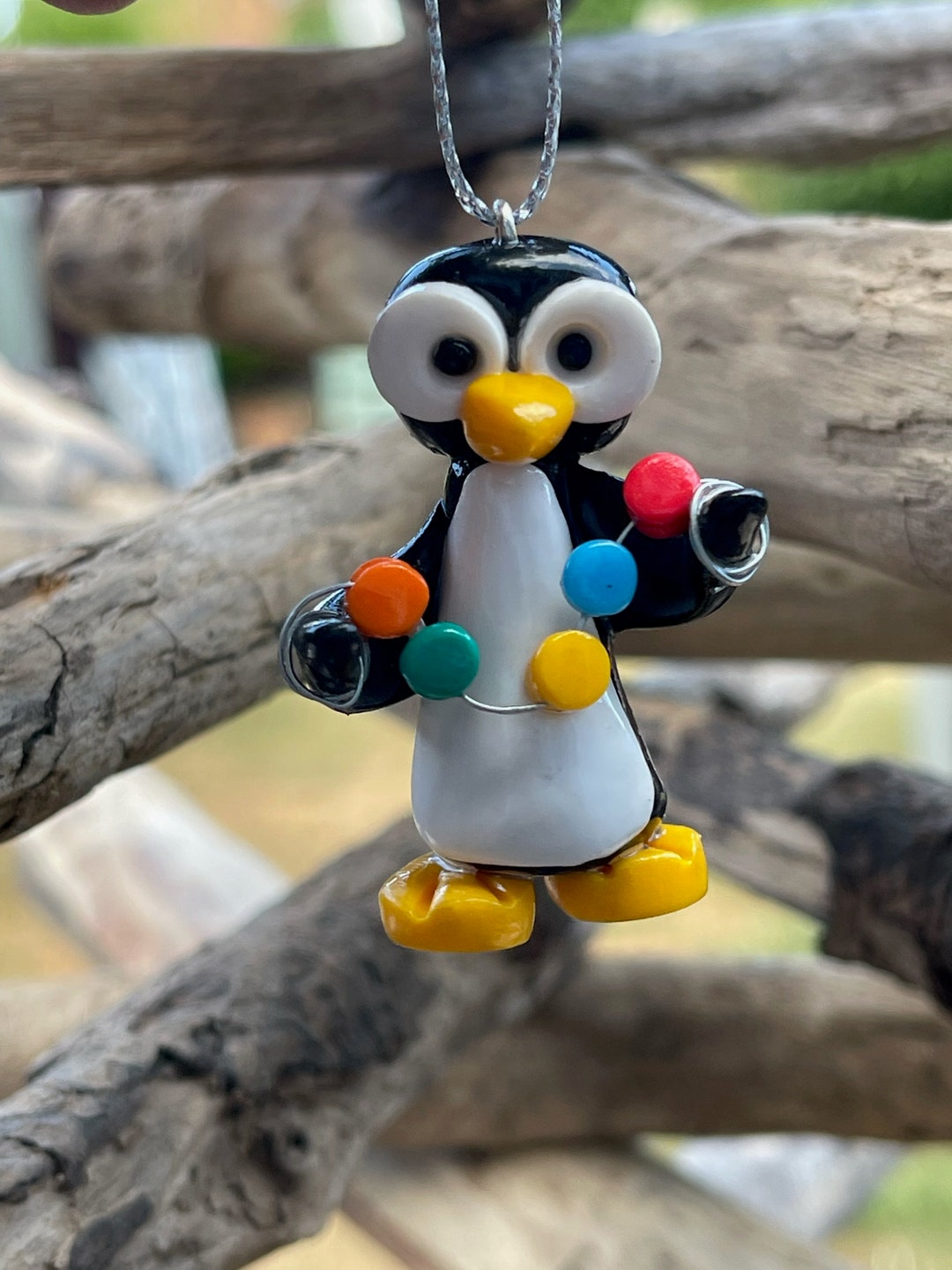 Handmade Clay Christmas Penguin Holding String of Lights P10 Etsy